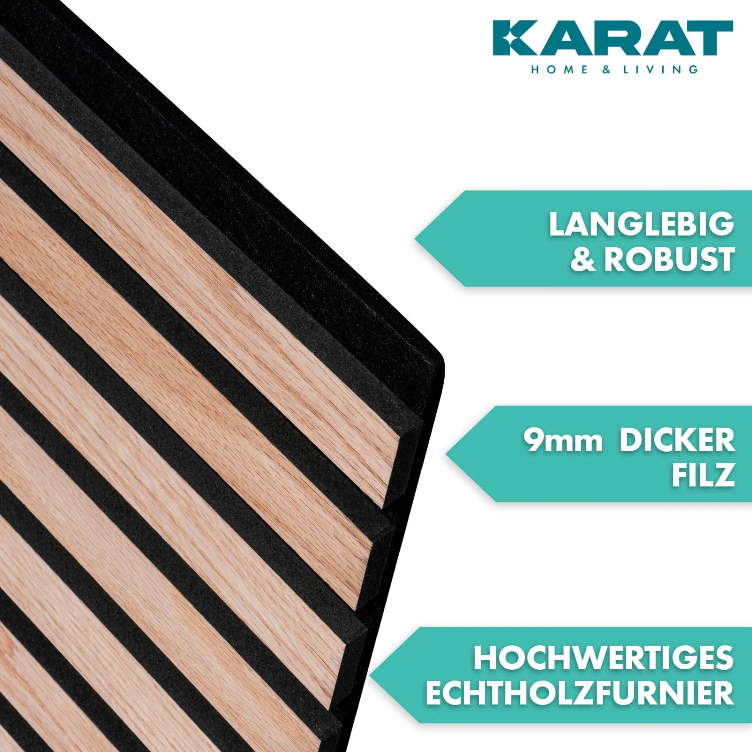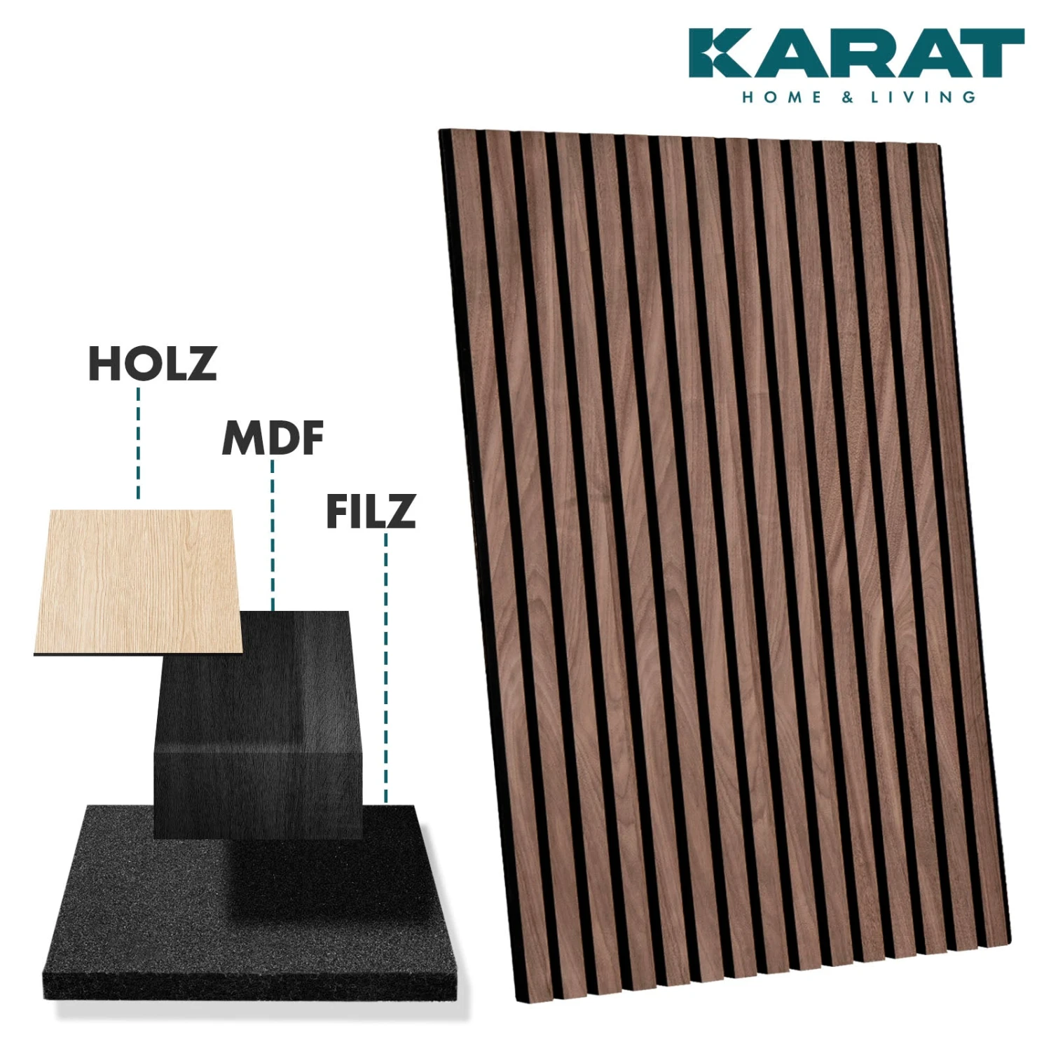 Unser Akustikpaneel ist in drei ansprechenden Designs erhältlich: Black Walnut, Red Oak und White Oak. Diese Designs verleihen jedem Raum eine warme und natürliche Atmosphäre. Das Paneel besteht aus hochwertigem Filz, MDF und echtem Holz, was eine langlebige und robuste Konstruktion garantiert.
