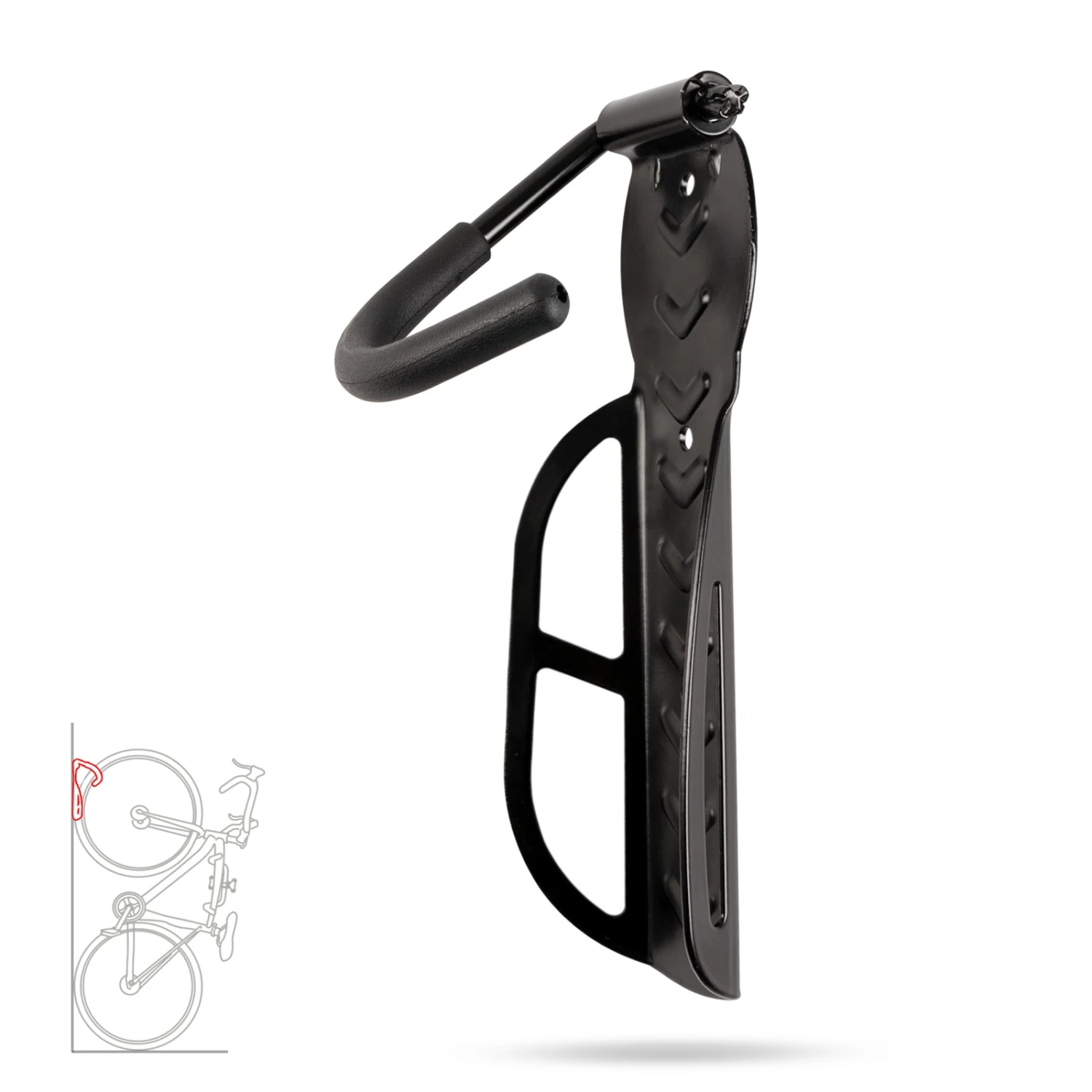 Von oben sieht die Welt doch auch ganz interessant aus. Das oder ähnliches könnte sich Ihr Fahrrad denken, wenn es in unserer Wandhalterung „Eddy“ parkt & den Blick nach unten lenkt. Die kleine, aber äußerst robuste Fahrradaufhängung aus schwarz glänzendem Stahl ist die ideale Lösung für eine platzsparende Aufbewahrung von gängigen Fahrradarten in Garage oder Keller.