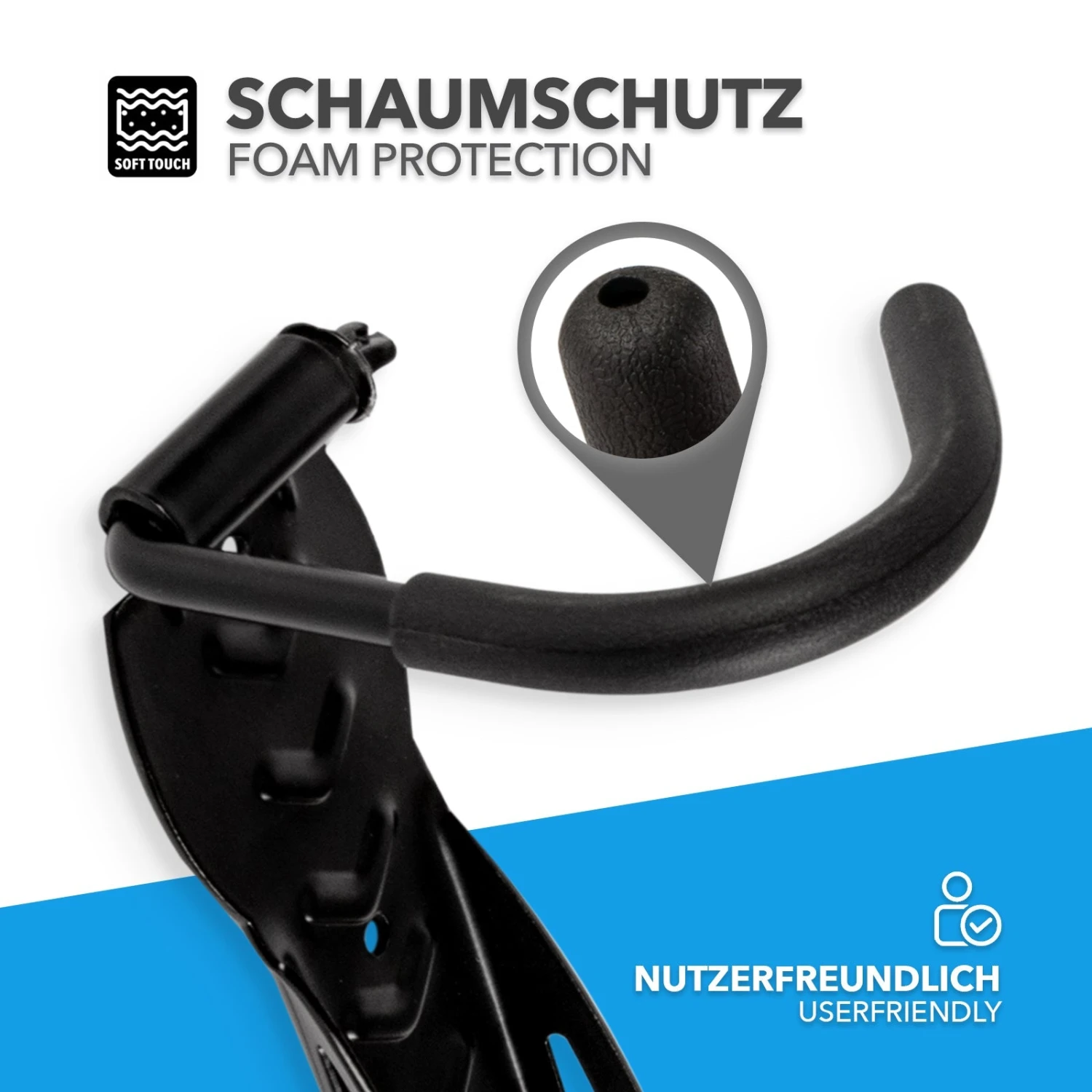 Zügig an der Wand montiert, müssen Sie nie wieder einen Gedanken an unnötiges Herumstehen mitten im Weg oder lästige Stolperfallen verschwenden. Auch wenn Sie Ihr Rad einmal längere Zeit nicht benutzen wollen – „Eddy“ präsentiert es stets aufgeräumt an der Wand. Beim Aufhängen des Rads sorgt ein integrierter Haltebügel für den nötigen Schutz vor unbeabsichtigten Beschädigungen der Felge.
