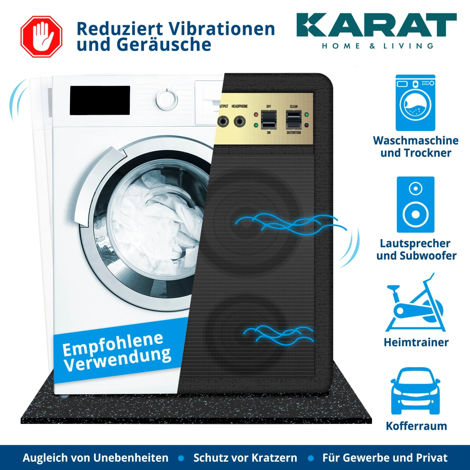 - Ideal für: Hantelbänke, Heimtrainer, Laufbänder, Stepper, Waschmaschine uvm.