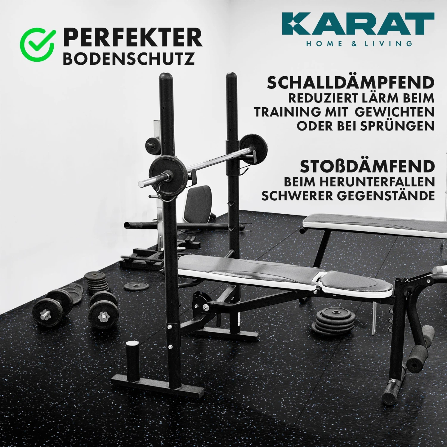 Entdecken Sie die ultimative Lösung für Ihren Fitnessraum, Keller oder Ihre Garage mit unserer maßgefertigten Gymnastikmatte, der perfekten Bodenschutzmatte für all Ihre Trainingsbedürfnisse!