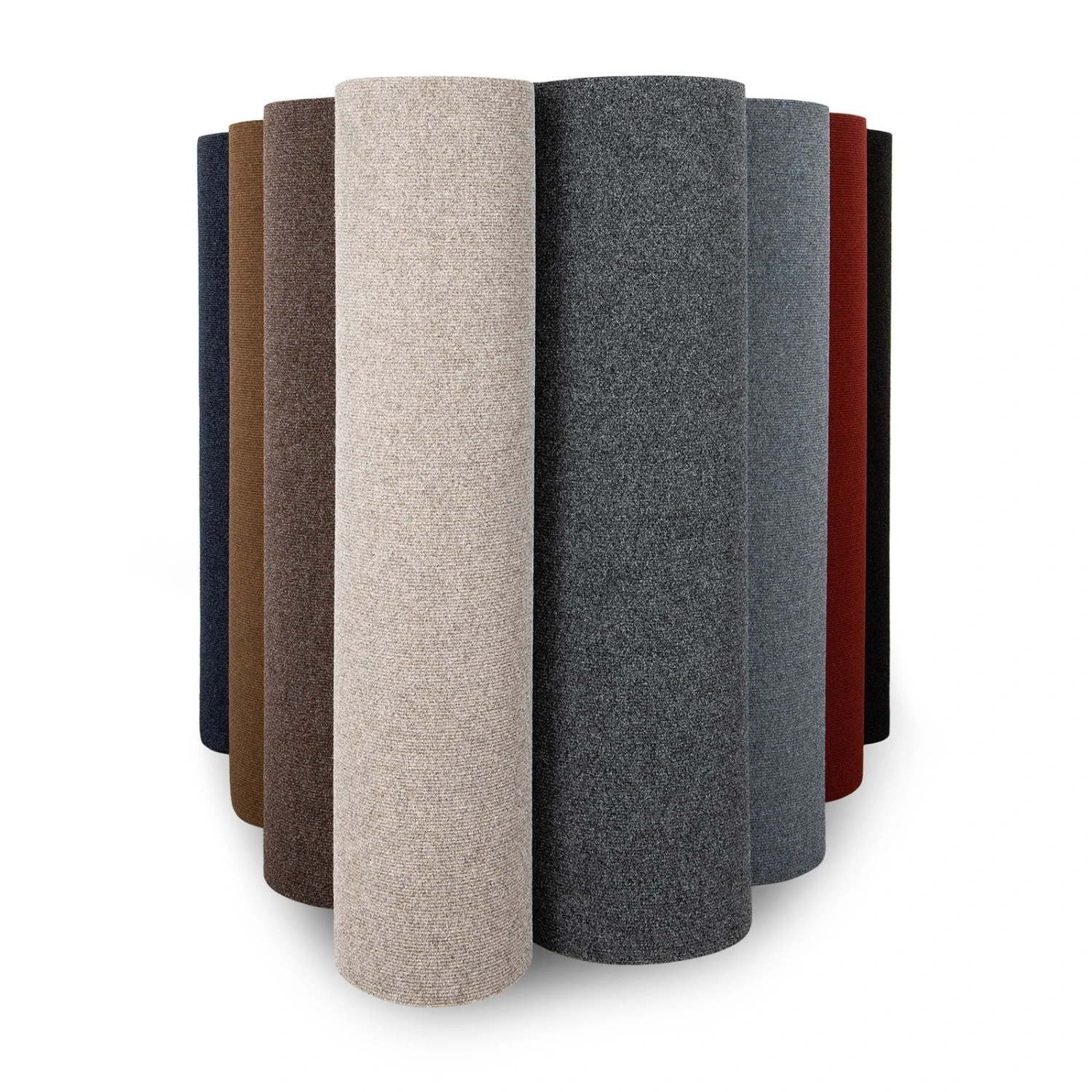 Erhältlich in acht Farben und zwei verschiedenen Breiten lässt sich der Bodenbelag bis auf eine Länge von 25 Metern passgenau bestellen. Sollten Sie weitere Anpassungen vornehmen müssen können Sie diesen ebenfalls mit einem handelsüblichen Teppichmesser weiter zuschneiden. So lässt sich der Teppichboden passgenau an Ihre Bedürfnisse und Ihren Verwendungszweck anpassen. Der als Rolle gelieferte Bodenbelag erlaubt eine schnelle Verlegung und ist zudem mit geeigneten Reinigungsmitteln und einem Staubsauger einfach zu säubern.