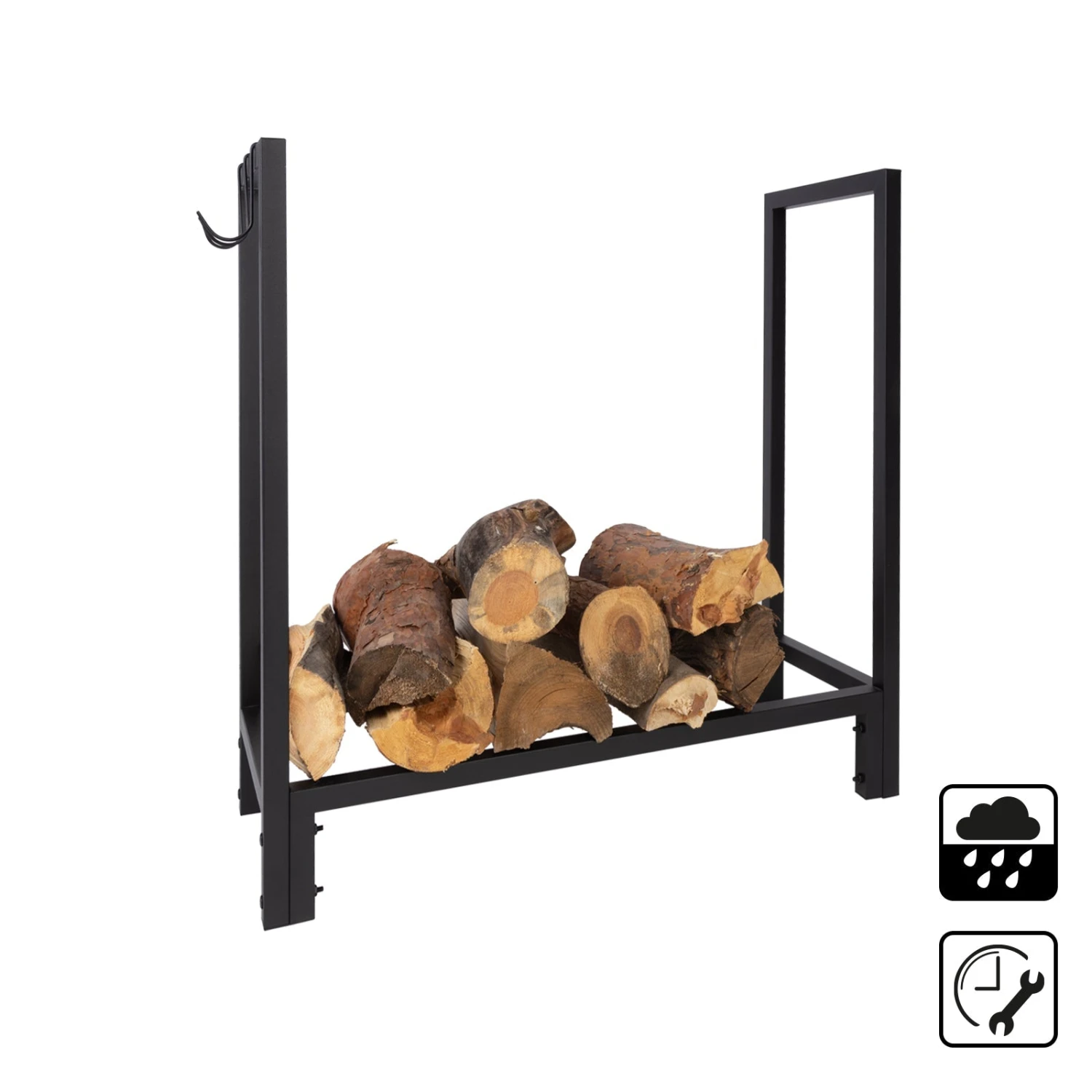 Das Kaminholzregal ist nicht nur der Begleiter für eine spielend leichte Lagerung von Brennholz. Es stellt sich ebenso als die geeignete Lösung für eine Verschönerung Ihres persönlichen Wohlfühlbereichs heraus. Doch das ist nicht alles! Mit drei Werkzeughaltern ausgestattet sogt das Design für ein schnelles Verstauen von Schürhaken, Zange, Besen oder Kelle.