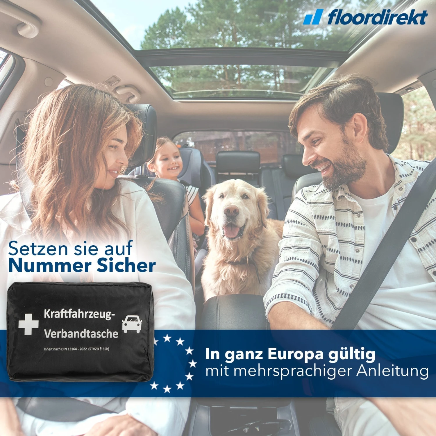 Diese KFZ-Verbandtasche nach DIN 13164 ist mit einer mehrsprachigen Anleitung ausgestattet. Somit ist es ohne Probleme möglich, im Ernstfall keine Zeit zu verlieren und sofort schnell + sicher zu handeln. Egal, ob Sie in Deutschland, Frankreich, Spanien oder einem anderen europäischen Land unterwegs sind: Sie finden immer die geeigneten Informationen, um die erforderlichen Maßnahmen zu ergreifen. Dank des wasserabweisenden Materials bleibt der Inhalt dieser Tasche auch in Situationen, die keinen Sonnenschein mit sich bringen, trocken sowie geschützt. Die Mindesthaltbarkeit des sterilen Inhalts ist bis 04/2028 gewährleistet.