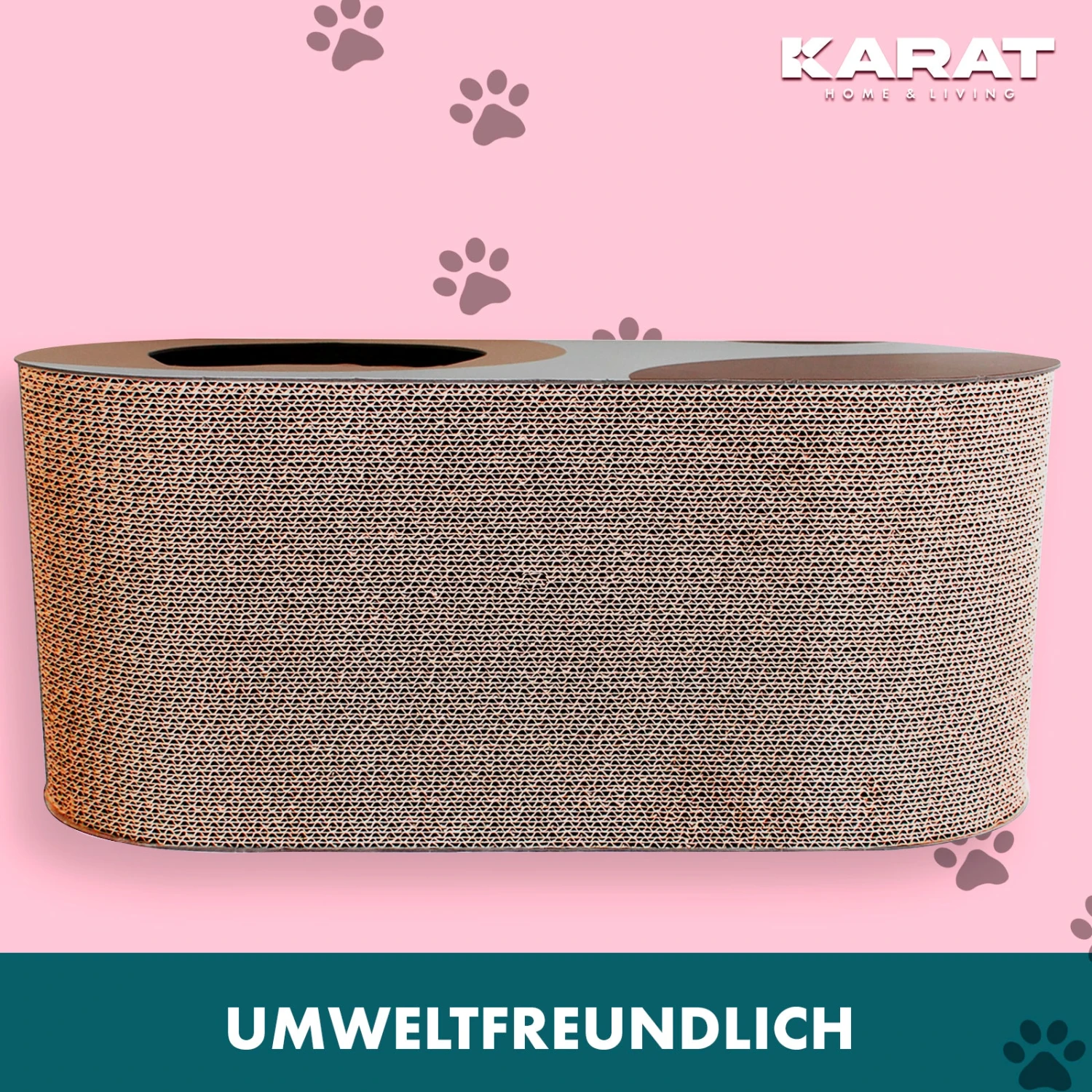 Die Kratzpappe Simba kombiniert die Funktionalität eines Kratzbretts mit dem Komfort eines Katzennests. Mit einer runden Form und den Maßen 25,4 cm Länge, 58 cm Breite und 25,4 cm Höhe, bietet Simba zwei Löcher als Eingänge, durch die Ihre Katze hinein- und herausklettern kann. Obenauf lädt eine Liegefläche zum Entspannen ein. Die hohe Dichte der Pappe sorgt für Stabilität, während die Atmungsaktivität und Abriebfestigkeit eine lange Nutzungsdauer garantieren. Simba ist der ideale Ort zum Spielen und Ausruhen, was ihn unwiderstehlich für jede Katze macht.
