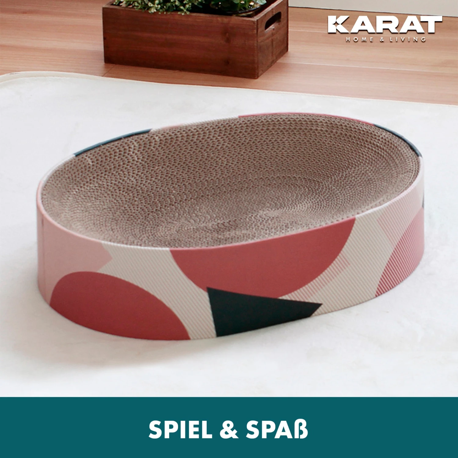 Die Kratzpappe Nala besticht durch ihre ovale Form und die Maße 34 cm Länge, 43,5 cm Breite und 10 cm Höhe. Diese Ausführung dient als perfekte Lounge für Katzen, die gerne entspannen und ihre Krallen pflegen. Die hochwertige Pappe bietet eine hohe Dichte und ist atmungsaktiv sowie abriebfest, was für eine lange Lebensdauer sorgt. Durch ihr gemütliches Design wird Nala schnell zum Lieblingsplatz Ihrer Katze.