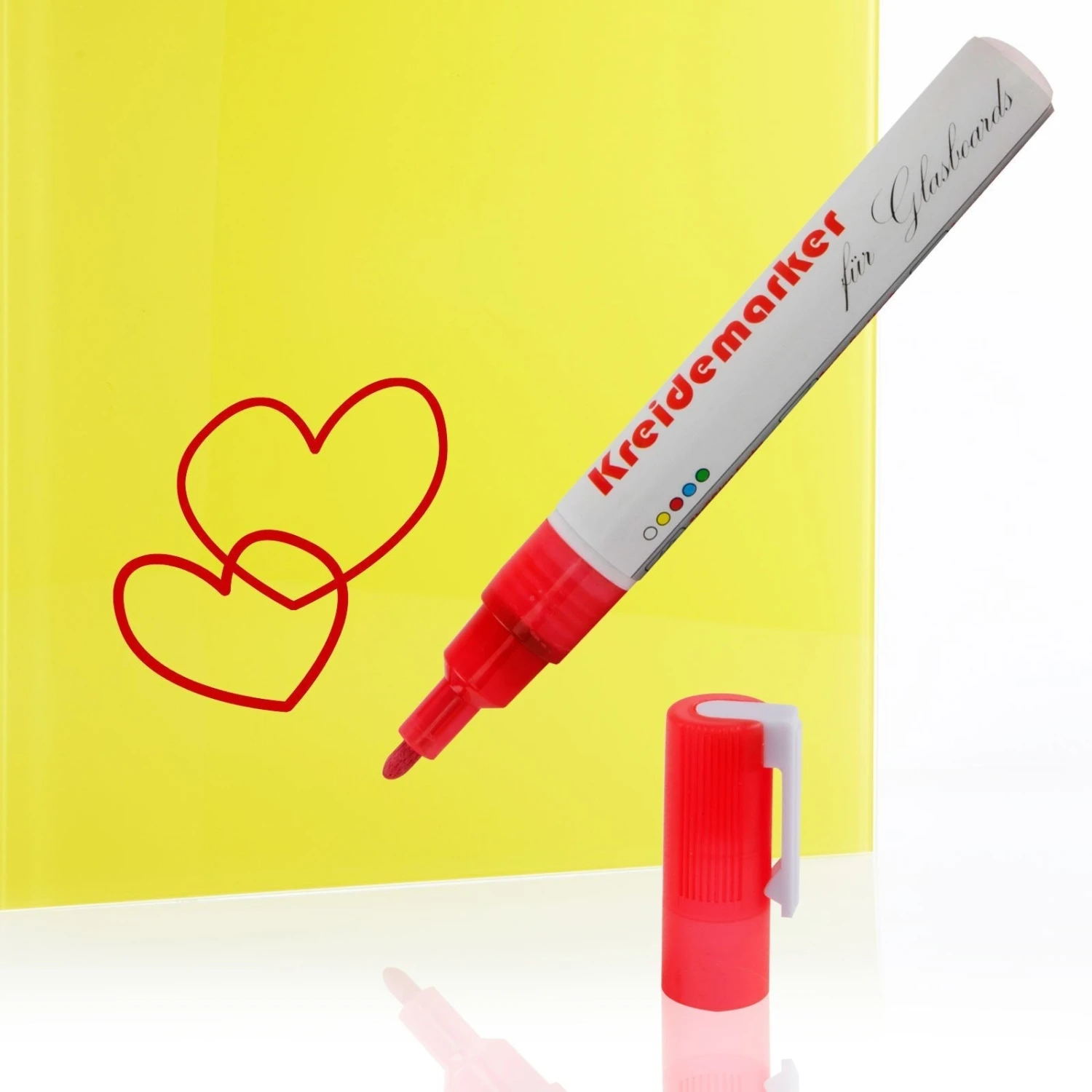 Mit den Kreidemarkern von Office Marshal lassen sich Whiteboards ebenso hervorragend beschriften wie Flipcharts, Glastafeln, Fenster oder Spiegel. Die Tafelschreiber ermöglichen ausgesprochen feines und präzises Schreiben oder Malen. Dank ihrer Wasserlöslichkeit kann die Beschriftung später – auch trocken – rückstandslos wieder entfernt werden.