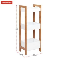 Bambus-Badregal | Texas | 3-Etagen Regal Mit WeiĂem Design Und Bambus-Beinen