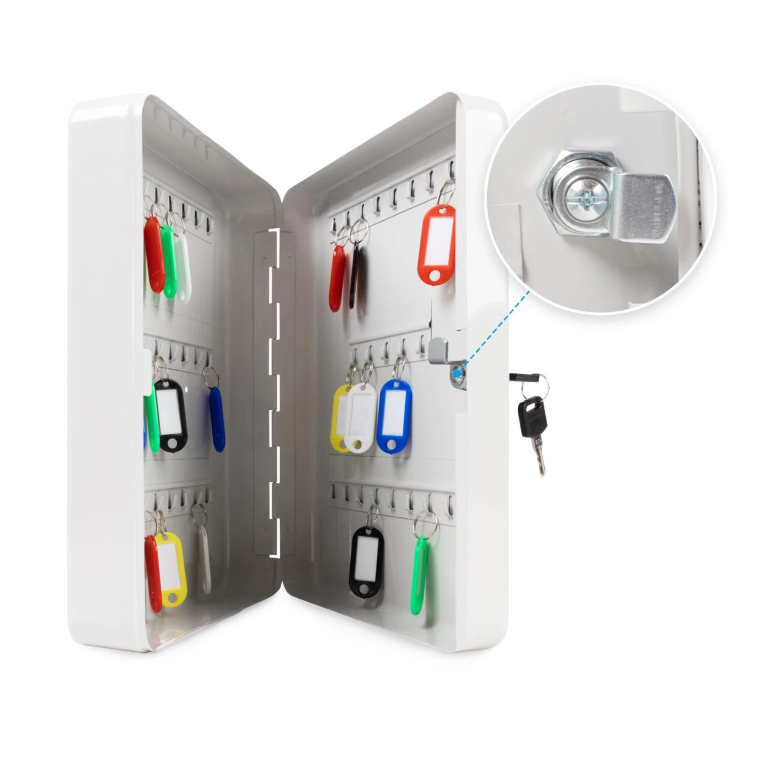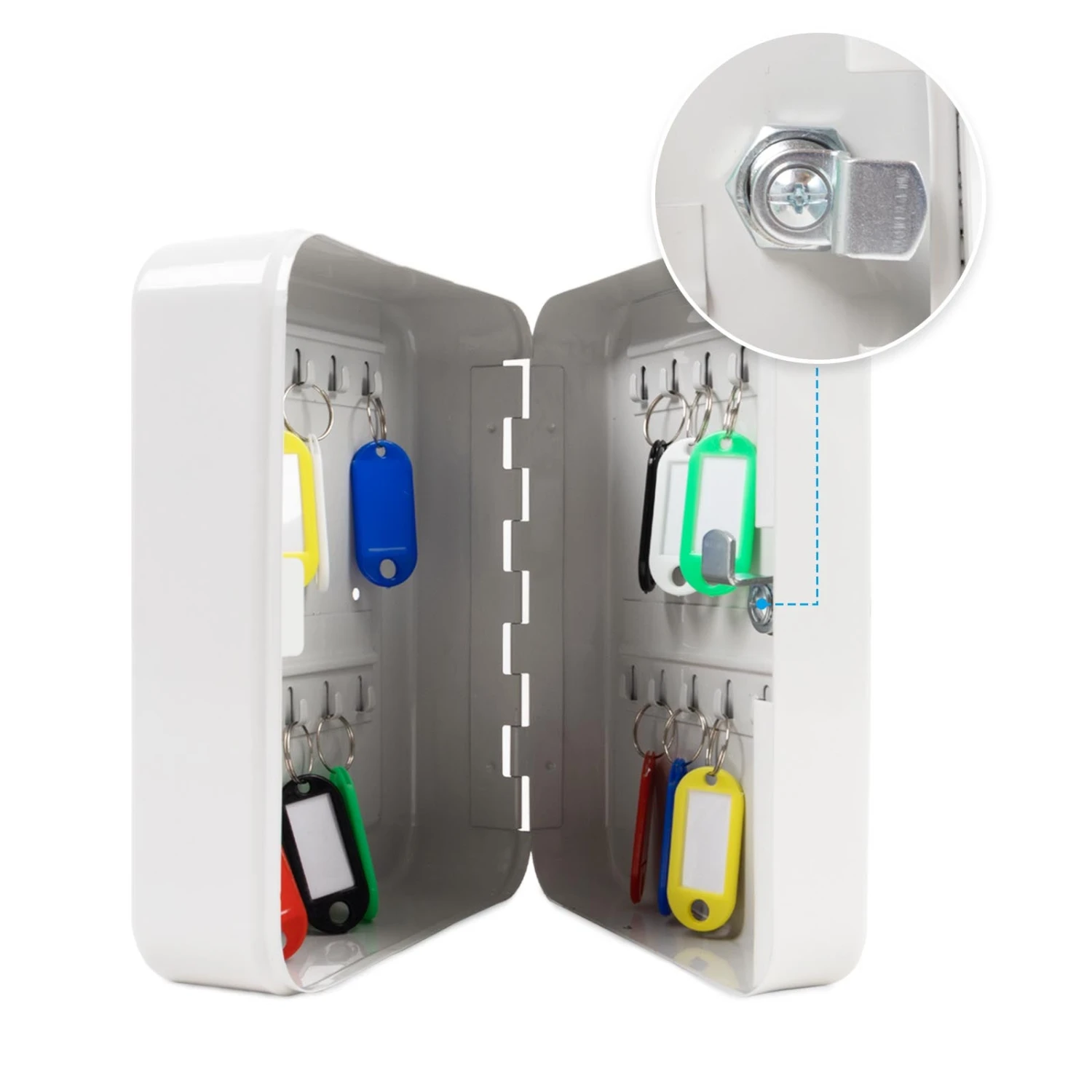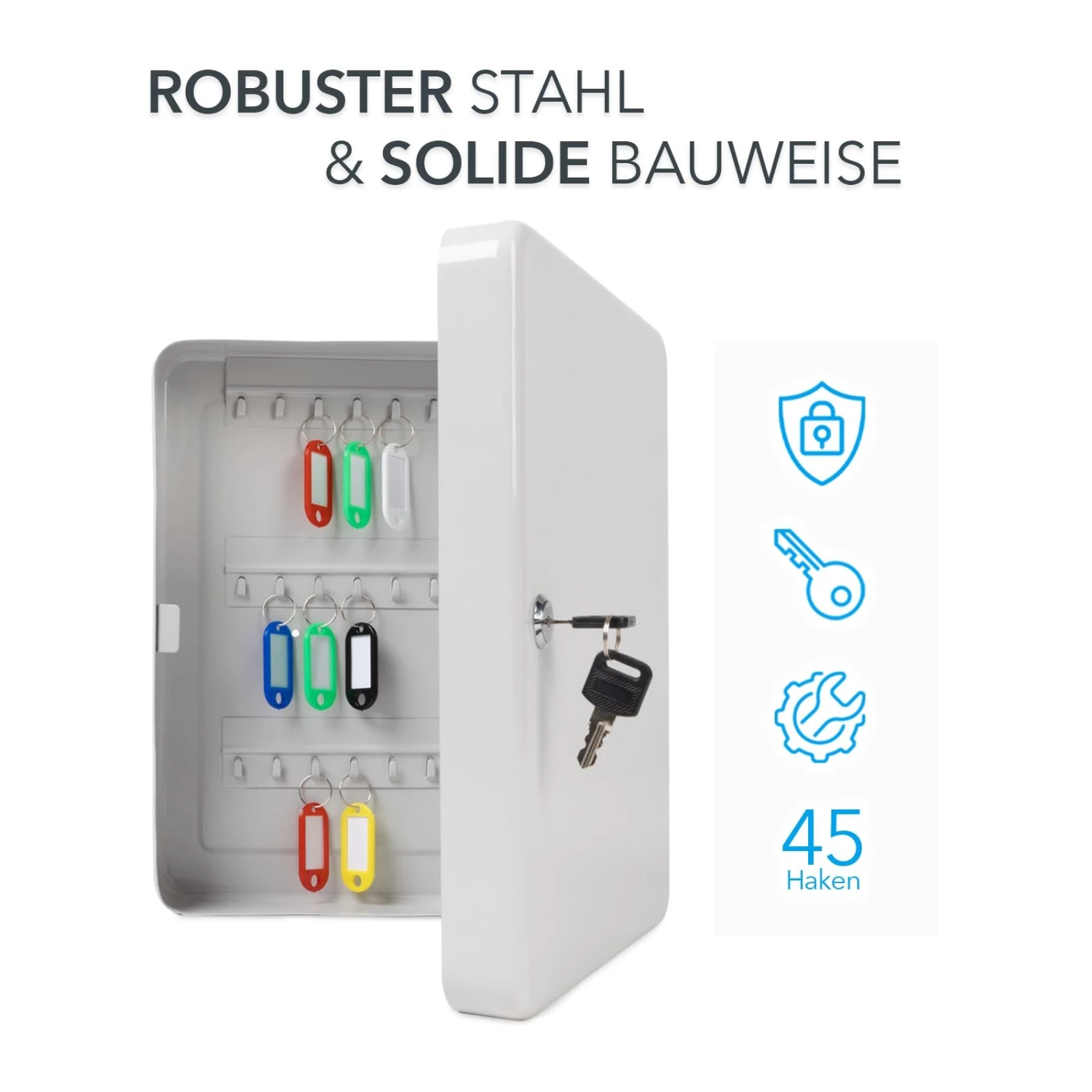 Sorgen Sie für Ordnung! Mit der praktischen Schlüsselbox, erhältlich in 2 Größen, gehört das Suchen von Schlüsseln der Vergangenheit an. Geeignet für den privaten Haushalt, aber auch für Werkstätten und Büros können hier alle Arten von Schlüssel sicher und geordnet aufbewahrt werden. Im Lieferumfang enthalten sind 2 Hauptschlüssel, sowie Numerierungsaufkleber und Befestigungsmaterial.